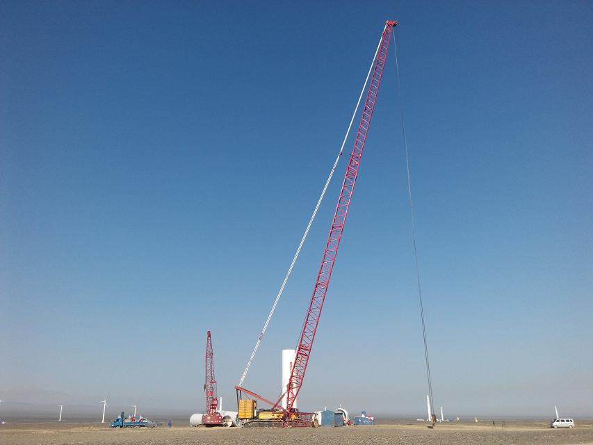 此臺(tái)履帶吊服務(wù)于戈壁灘一大型風(fēng)電項(xiàng)目,由于此臺(tái)履帶吊噸位大,現(xiàn)場(chǎng)環(huán)境惡劣,所吊裝的設(shè)備價(jià)值昂貴,現(xiàn)場(chǎng)對(duì)安全高度的重視,故該能源建設(shè)公司為此臺(tái)履帶吊配備我公司TLX55A型履帶吊力矩限制器,來為此項(xiàng)目的安全保駕護(hù)航。