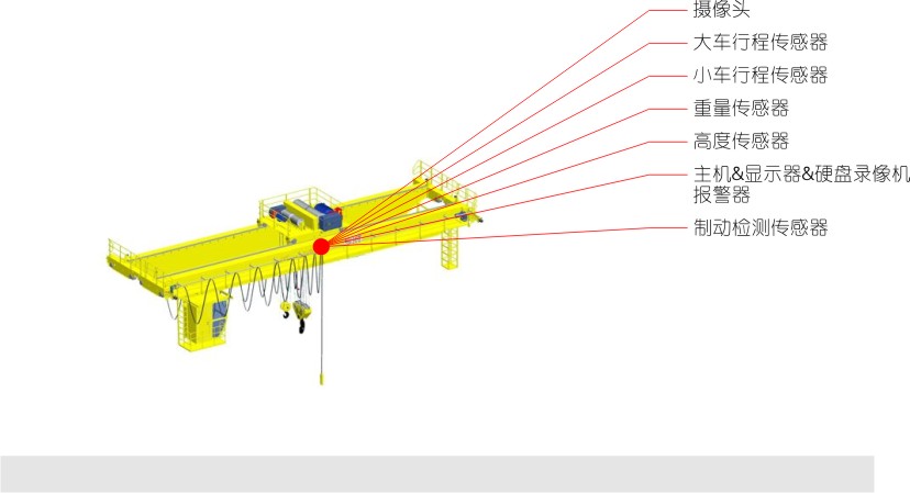 (1)起重機(jī)吊鉤工作區(qū)域等重要部位,均設(shè)置攝像機(jī),做到對(duì)起重機(jī)工作環(huán)境的實(shí)時(shí)監(jiān)視